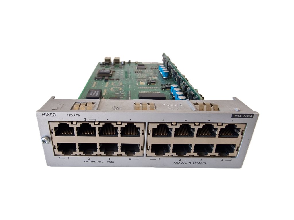 Karta pro 2 ISDN2 (BRI) státní linky, 4 digitální uživatele a 4 analogové uživatele pro ústředny Alcatel-Lucent OXE a Alcatel-Lucent OXO.